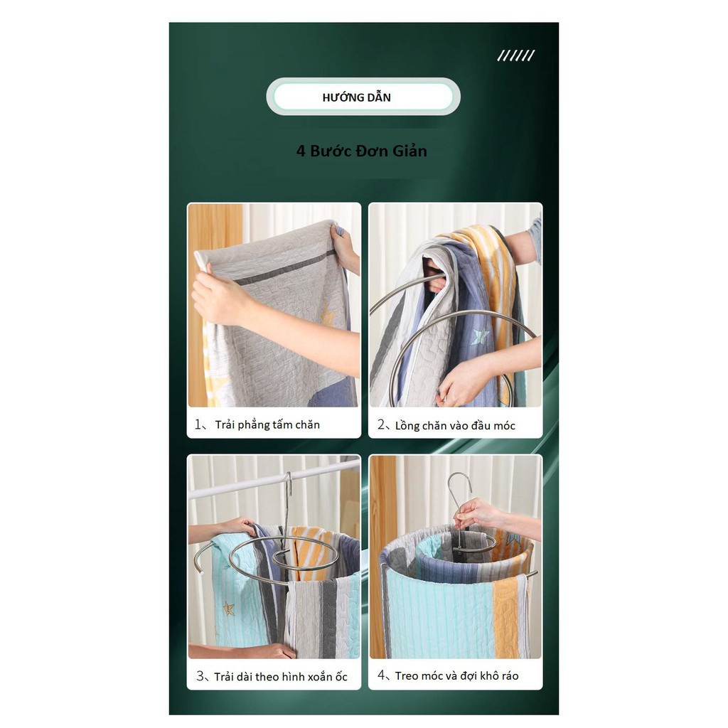 Móc phơi đồ, chăn mền thông minh hình tròn bằng inox không gỉ
