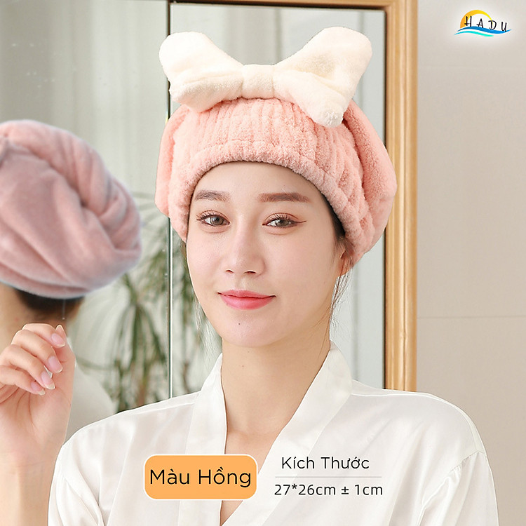 Mũ Trùm Đầu Ủ Tóc Khi Tắm Bền Cao Cấp Nơ Kiểu Nhật Khô Nhanh Mềm Mịn HADU