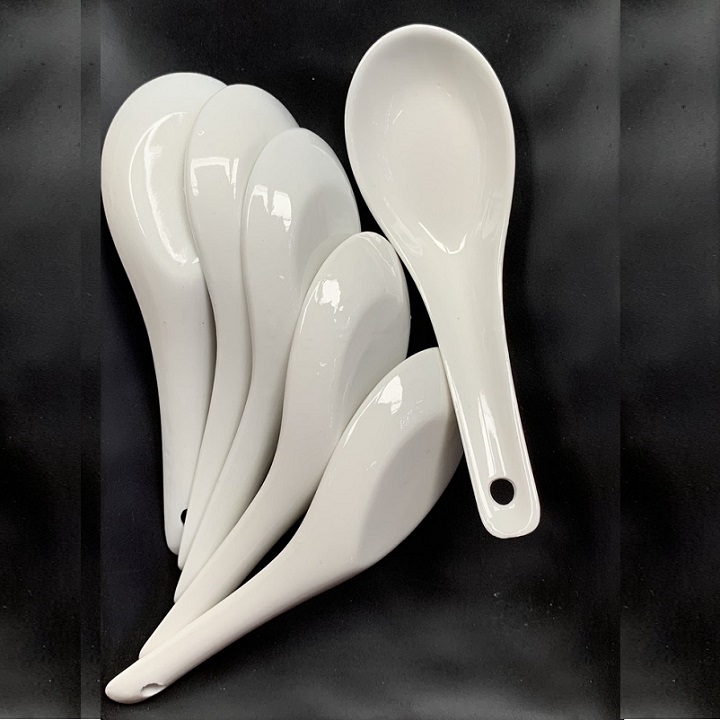 - Sản phẩm thìa cơm sứ trắng được chế tác hoàn toàn thủ công tại Bát Tràng