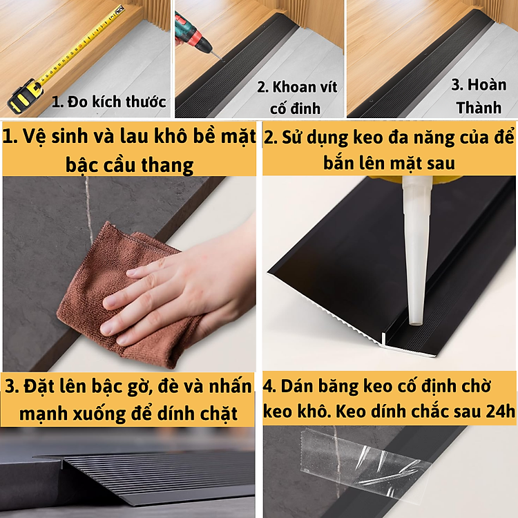 Khách hàng mua KEO ĐA NĂNG để dán nẹp nhôm chống trượt. 1 chai dán được khoảng 5-6 thanh 90cm
