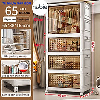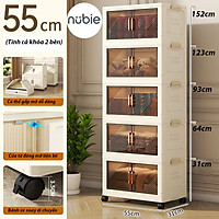 Tủ Đựng Đồ Gấp Gọn Nubie Cao Cấp Ngang 56cm 4/5 Tầng, Đựng Quần Ao, Cửa Nam Châm, Kèm Bánh Xe