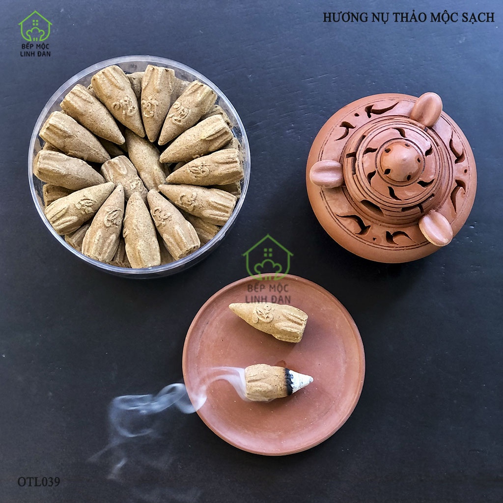 - Nhang nụ (hương nụ) sạch của shop Bếp Mộc Linh Đan cam kết làm từ bột thảo mộc thuốc bắc tự nhiên 100% nguyên chất, không pha tẩm hương liệu hóa chất gây độc hại cho sức khỏe.