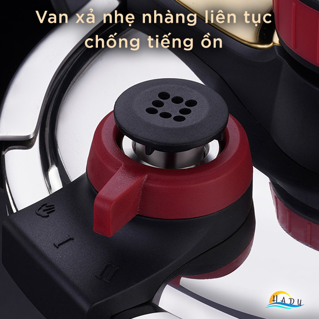 - Van điều chỉnh áp suất của nồi áp suất đa năng thiết kế thông minh tránh làm bỏng tổn thương da.