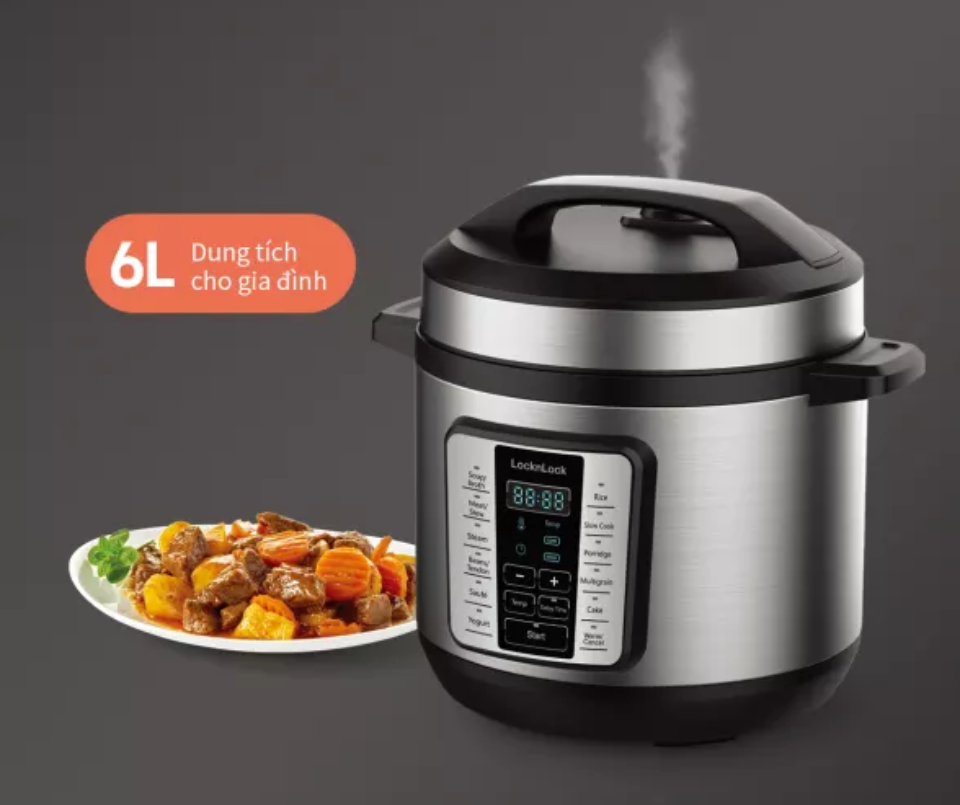 Nồi Áp Suất Điện Tử Lock&Lock EJP666SLV 6 Lít Có 11 Chế Độ Cài Đặt Sẵn, Giữ Ấm Tối Đa 24h - Hàng Chính Hãng