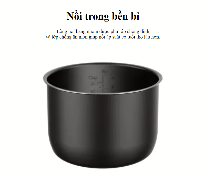 2. Lòng nồi được thiết kế bằng nhôm phủ lớp chống dính giúp nồi áp suất đa chức năng có tuổi thọ lâu hơn và được cải thiện với lớp chống ăn mòn.
