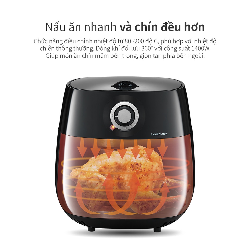 - Với công nghệ tuần hoàn không khí nhanh giúp nồi làm nóng nhanh và là giải pháp thay thế lành mạnh do không sử dụng dầu