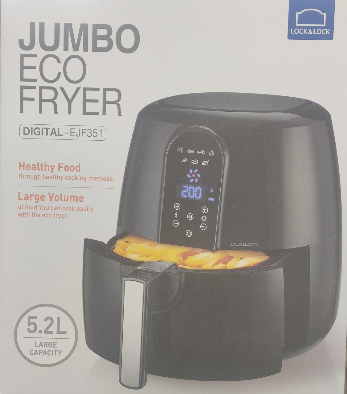Dung tích nồi chiên Lock&lock 5.2L phù hợp để bạn chiên thực phẩm ăn trong ngày cho gia đình khoảng 6-8 người. Với dung tích này, bạn có thể chế biến các món như: Cánh gà chiên, đùi gà chiên, khoai tây/ khoai lang chiên,… hoặc chiên nguyên cả con gà.