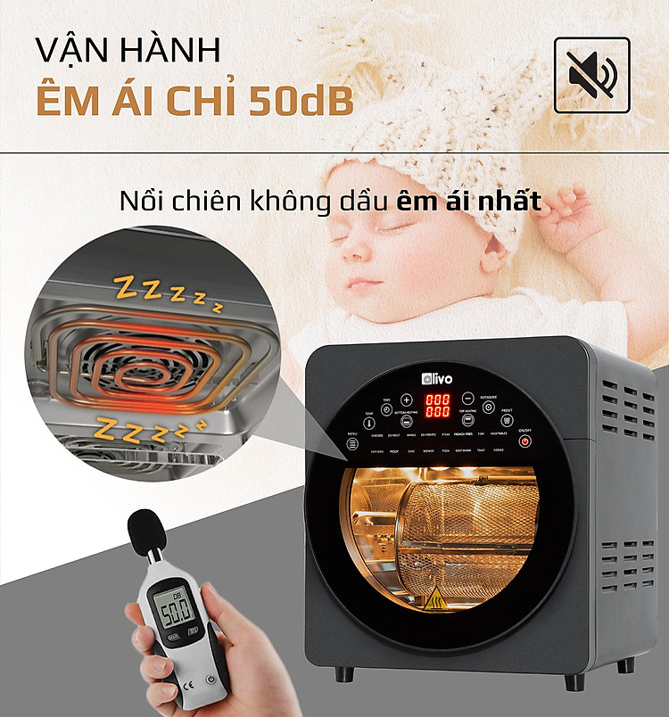 Nồi chiên không dầu có độ ồn thấp nhất chỉ 50dB