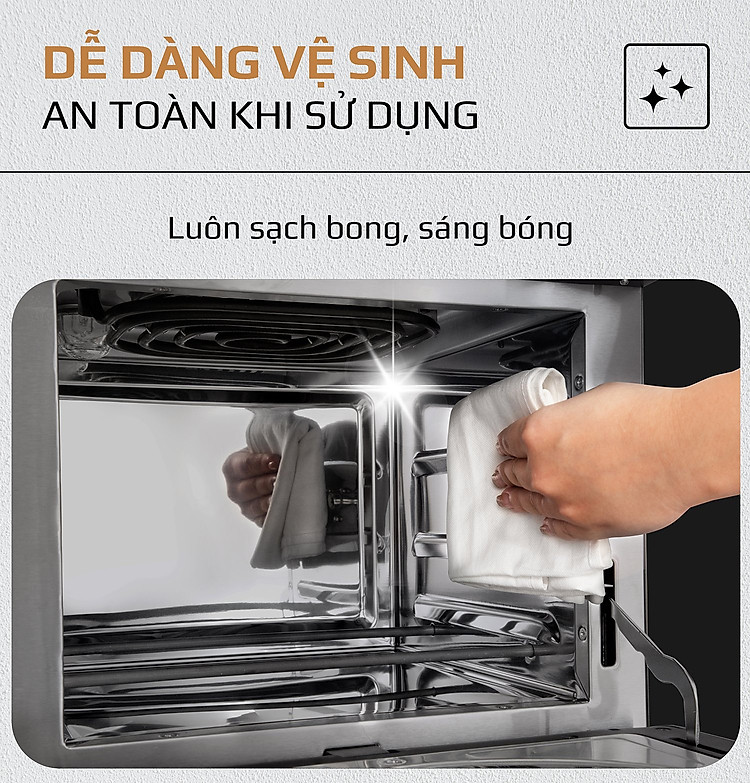 Cửa lò cách nhiệt 2 lớp kính giúp An toàn hơn khi sử dụng trong gia đình.