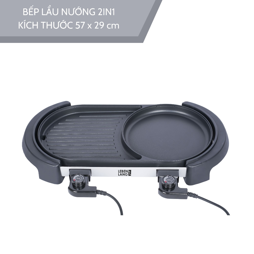 Bếp lẩu nướng Lebenlang LBTT0805, nồi lẩu nướng 2in1 lớn công suất 2000W, nhanh gọn tiện lợi - hàng chính hãng