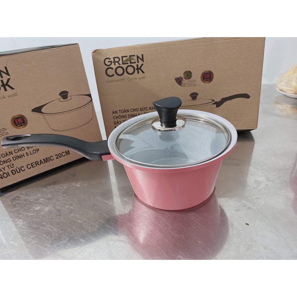 Giới thiệu Nồi nấu bột chống dính đáy từ đúc ceramic vân đá 18cm Green Cook - Nồi quánh chống dính chất liệu cao cấp.