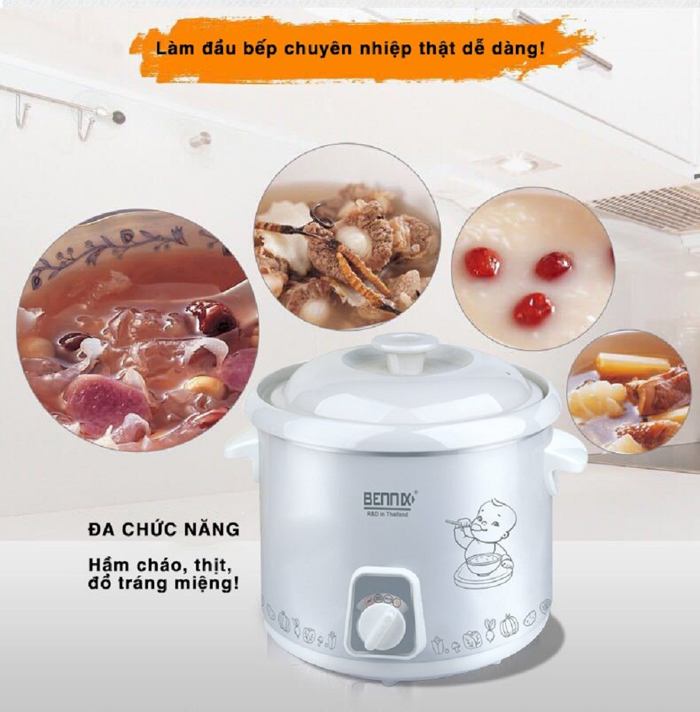 Nồi Nấu Cháo Chậm, Nồi Tiềm Đa Năng Bennix- Hàng Chính Hãng