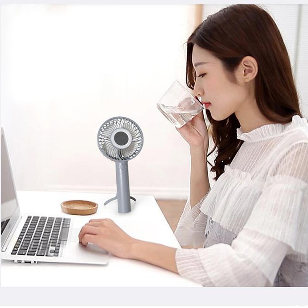 Quạt Cầm Tay Mini Để Bàn 3 Cấp Độ Gió Pin 1200mAh Có Đèn LED Và Gương trang điểm