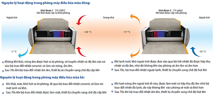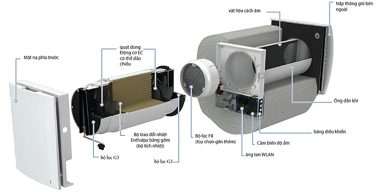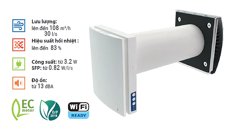 - Được thiết kế tiết kiệm năng lượng hiệu quả, cho hoạt động cung cấp khí tươi và thoát khí thải, thông gió phòng đơn trong các căn hộ, nhà ở, cơ sở xã hội và thương mại
