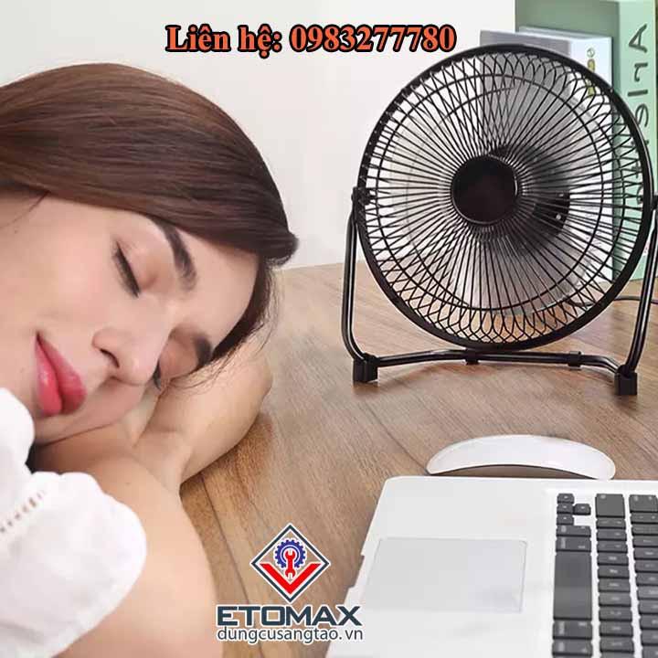 Quạt để bàn mini cắm cổng USB với kiểu dáng nhỏ gọn, thiết kế đẹp mắt sử dụng an toàn, tiết kiểm điện năng với nguồn điện 5v cắm cổng usb vô cùng tiền lợi, đặc biệt với những ai làm việc trong văn phòng thì đây là sự lựa chọn tuyệt vời. nay có 3 phiên bản kích thước cho bạn lựa chọn 4inch, 6inch, 8inch