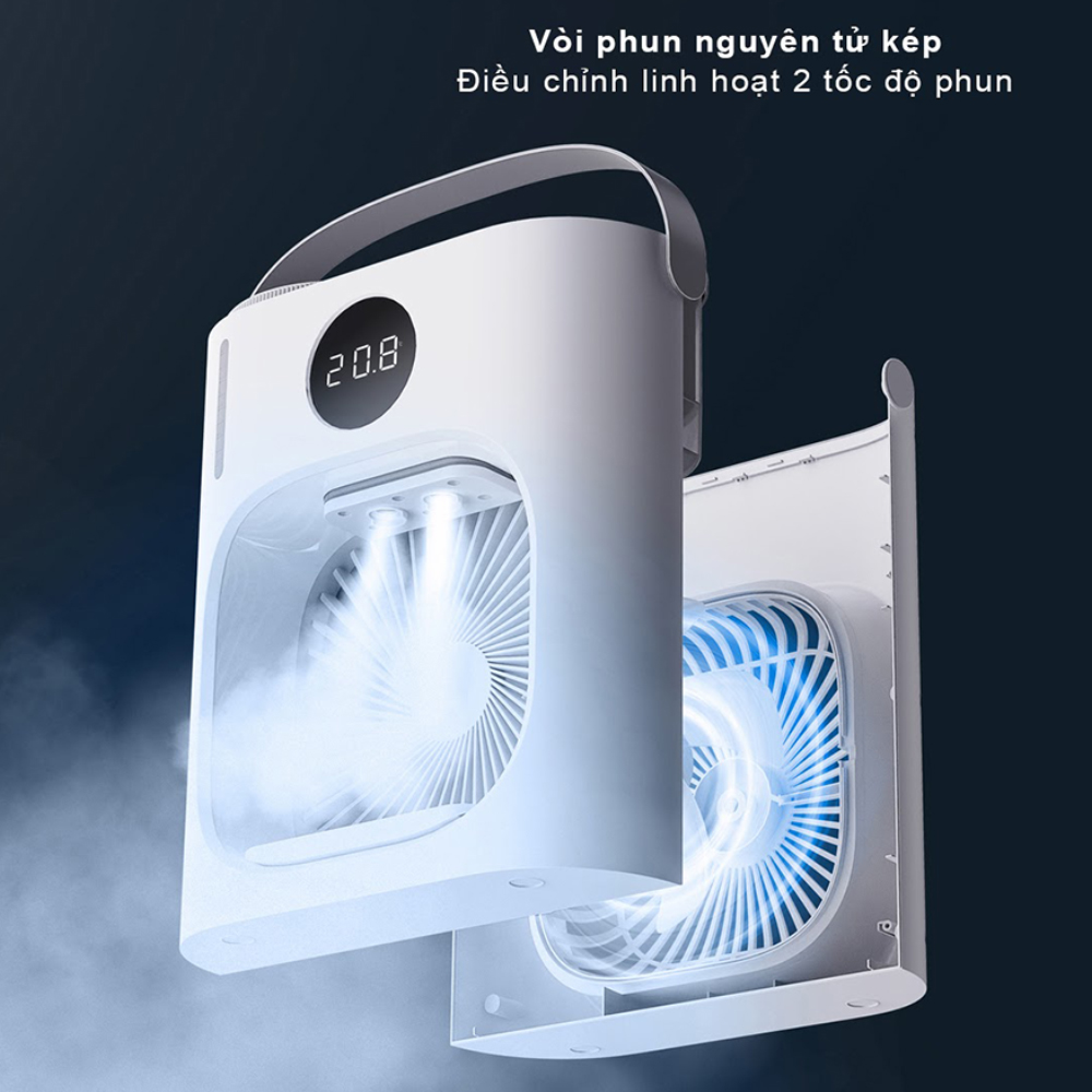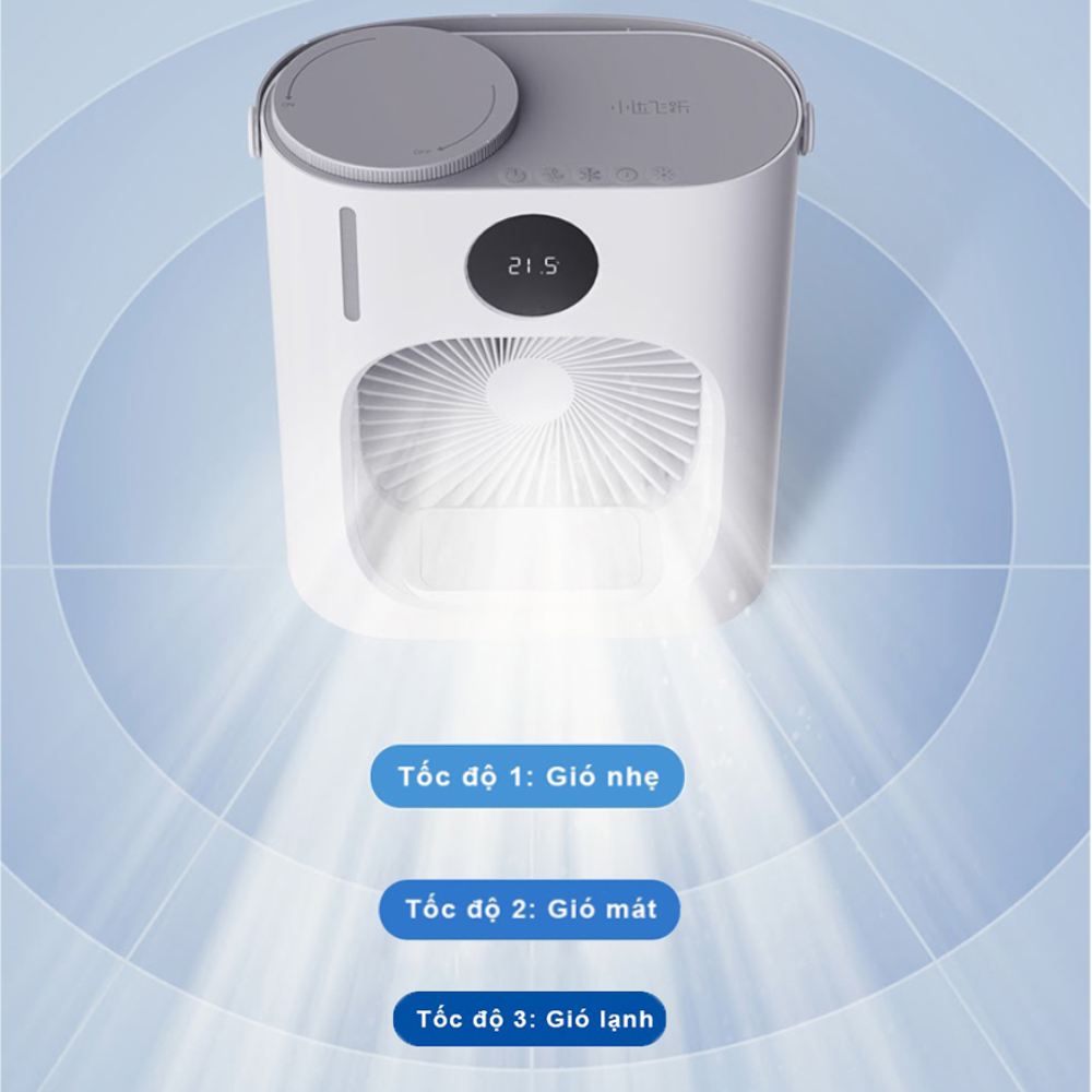 Quạt hộp mini Xiaoda sử dụng cơ chế phun sương, mô phỏng sự bay hơi tự nhiên của nước, kết hợp với gió để phân tán và nhanh chóng làm giảm nhiệt độ của không khí. Giúp tăng cường tốc độ và khả năng làm mát cho không gian sống của bạn. Bên cạnh đó, quạt còn được trang bị vòi phun nguyên tử kép, có thể điều chỉnh 2 tốc độ phun sương, lan tỏa sự mát mẻ nhanh chóng để thổi bay cơn nóng ngày hè.