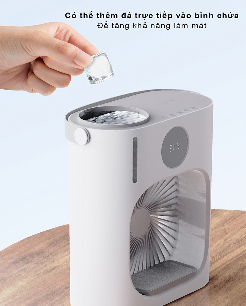 Một mẹo khá hay là nếu muốn luồng không khí trở nên mát lạnh hơn, giống như gió của máy điều hòa, người dùng có thể bỏ đá trực tiếp vào trong bình chứa để tăng hiệu quả làm mát khi sử dụng của quạt.