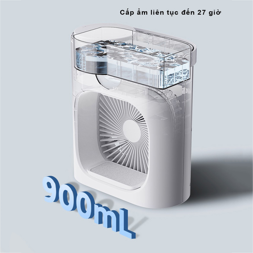 Tuy có kích thước nhỏ, nhưng quạt phun sương Xiaomi lại sở hữu dung tích bình chứa khá lớn - lên đến 900ml, có thể cung cấp khả năng phun sương, cấp ẩm liên tục trong 27 giờ. Hoạt động xuyên suốt cả ngày dài mà không cần bạn phải tốn công châm nước thường xuyên, đỡ mất thời gian.