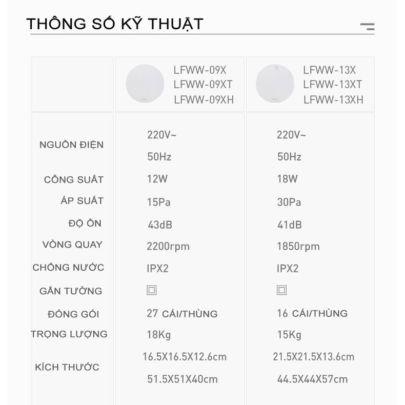 (Có mẫu cảm ứng hút ẩm LFWW-09XT/XH)