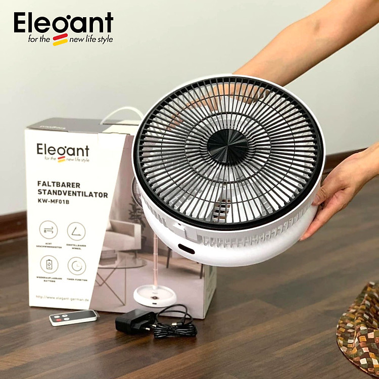 - Quạt gấp thông minh Elê Gan T tích hợp pin lên tới 8h có thể dùng cho mỗi gia đình khi mất điện. Sản phẩm quạt gấp thông minh siêu tiện lợi và mang được đi xa nhờ quạt có thể tăng giảm chiều cao linh hoạt và gấp gọn gàng khi không có nhu cầu sử dụng