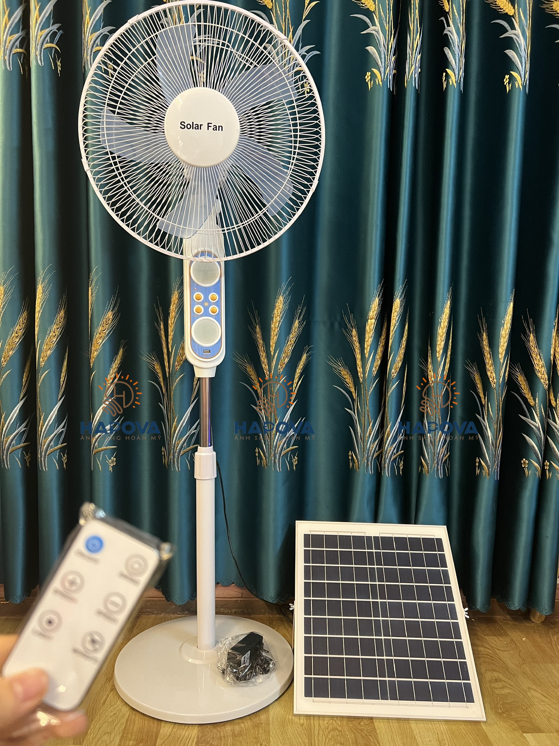 - Quạt Năng Lượng Mặt Trời: có điều khiển từ xa với 3 cấp số, nút bấm