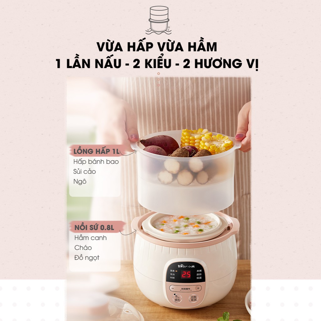 Giới thiệu [Bản Quốc Tế] Nồi Nấu Chậm BEAR Các Dung Tích 0.8L (Kèm Lồng Hấp) - Bảo Hành Chính Hãng 12 Tháng