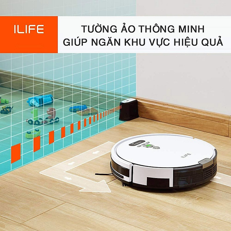 Robot iLife V8Plus được trang bị tính năng tường ảo. Giúp bạn có thể tạo ra ranh giới không cho robot đi vào những khu vực cấm hoặc khu vực mà bạn không muốn robot dọn dẹp.