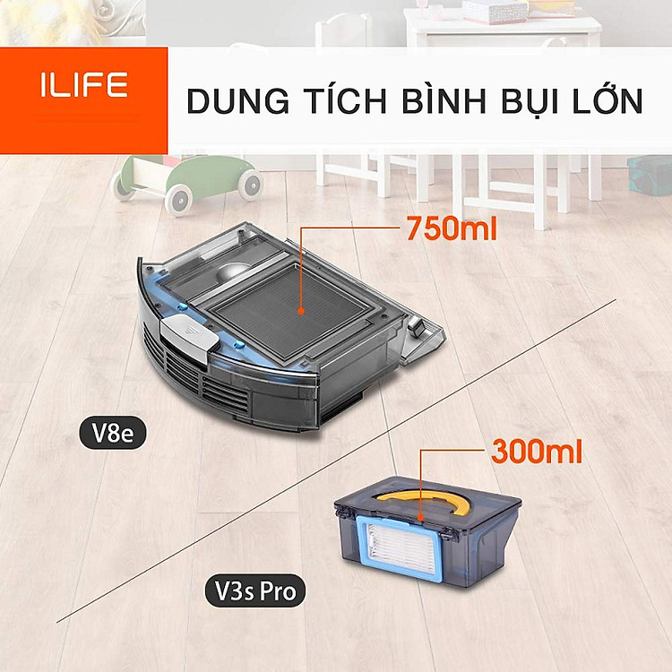 Hộp bụi của iLife V8Plus có dung tích lớn hơn 2,5 lần so với iLife V3S Pro. Chính vì vậy robot có thể hút rất nhiều loại bụi khác nhau trong diện tích lớn, hoặc trong nhiều phiên làm việc khác nhau. Đồng thời bạn sẽ không phải vệ sinh hộp bụi mỗi ngày, giúp bạn tiết kiệm được 1 khoảng thời gian quý báu.