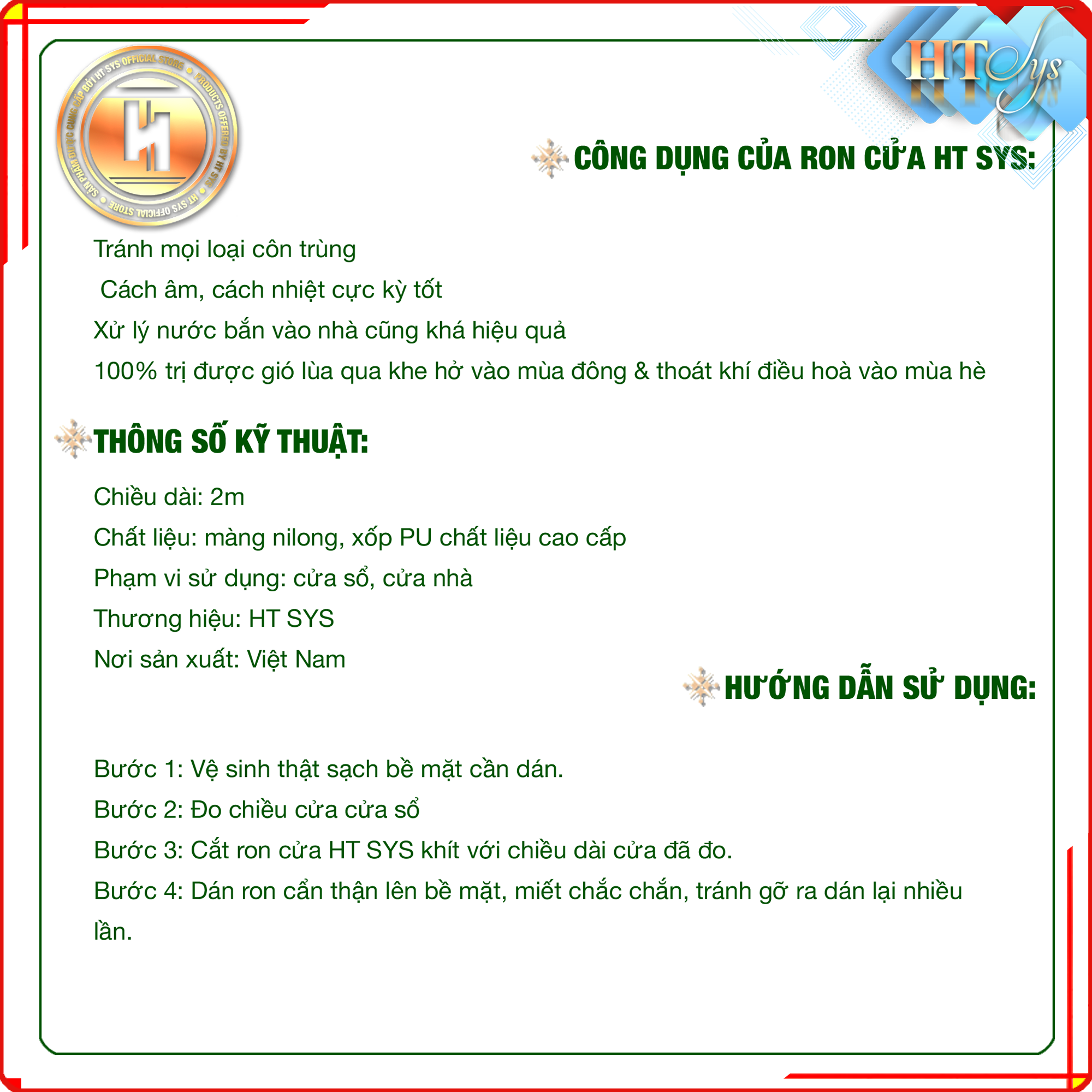 RON CHẶN KHE CỬA HT SYS ĐA NĂNG - NGĂN GIÓ CÁCH ÂM - HÀNG CHÍNH HÃNG