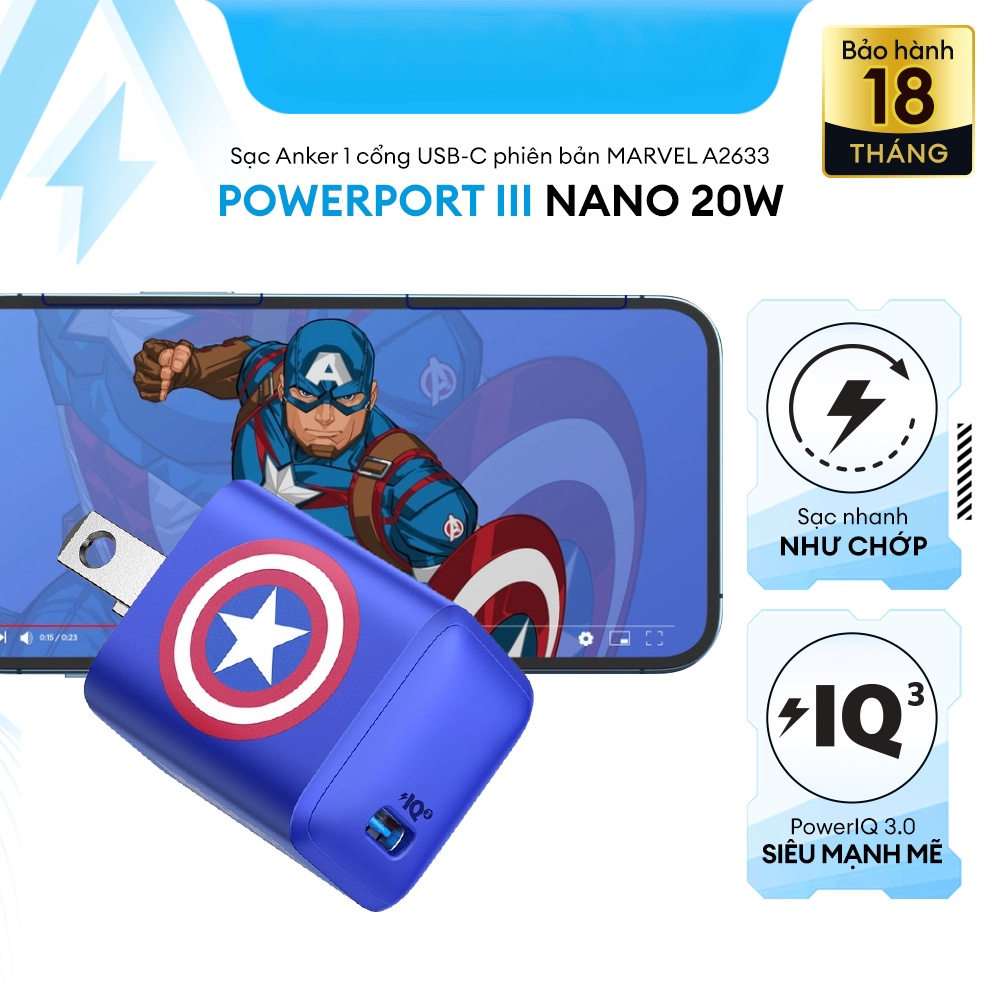 Giới thiệu Sạc AN.KER PowerPort III Nano 20W Phiên Bản Marvel Giới Hạn - AN KER A2633