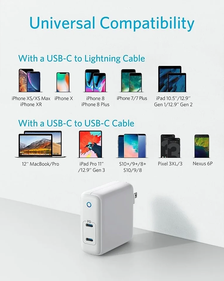 Tối ưu hóa cho hiệu suất tối đa với điện thoại qua 2 cổng USB-C cho máy tính bảng, máy tính xách tay,... tương thích với MacBook Pro 12 inch, iPad Pro 11 inch / 12.9 inch Gen 3...