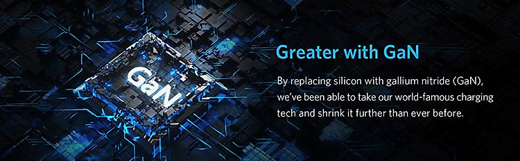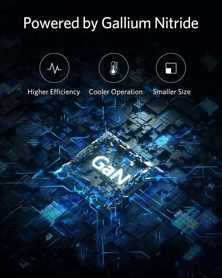 Anker đã thay thế vật liệu silicon bằng GaN (Gallium Nitride) để tạo ra các sản phẩm sạc có hiệu suất cao hơn, giảm lượng nhiệt tỏa ra và giảm kích thước sạc để có được sản phẩm sạc mạnh mẽ và nhỏ gọn.