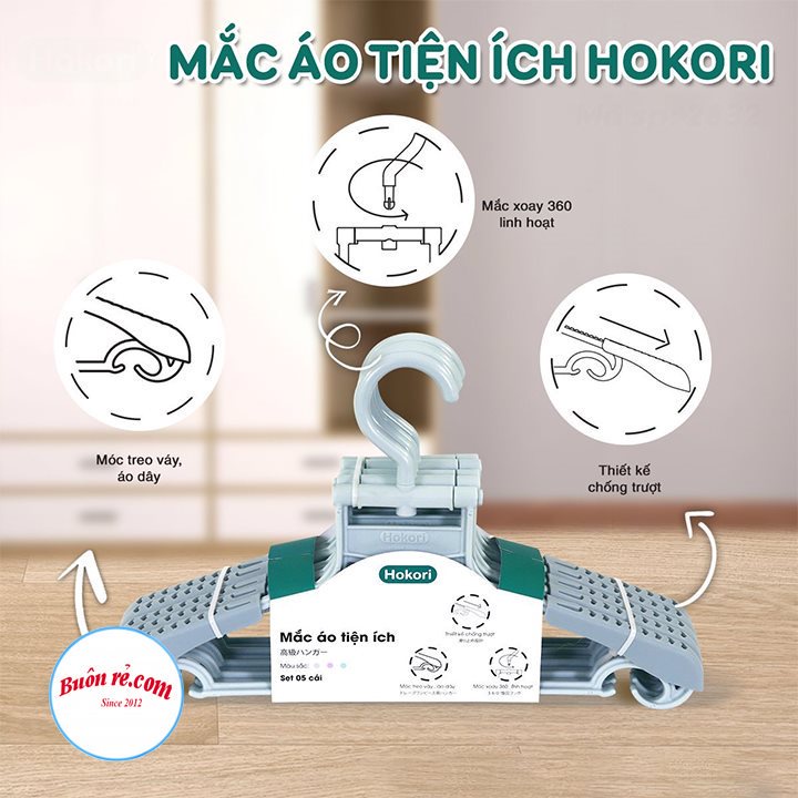 Giới thiệu Set 10 MÓC treo quần áo người lớn Hokori cao cấp✨ GIÁ SỐC ✨ nhựa Việt Nhật -Mắc nhũ treo quần áo, móc phơi đồ- 2832