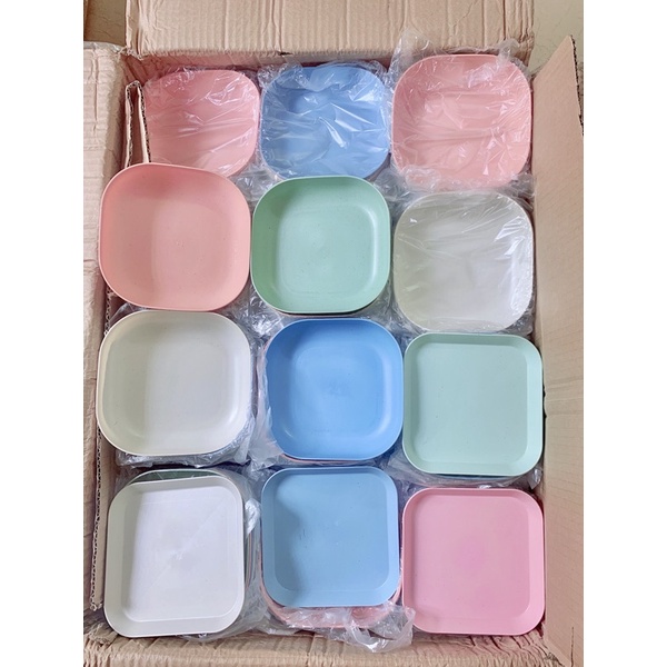 Nhà cửa & Đời sống > Bộ đồ bàn ăn > Dĩa || Sét 8 đĩa lúa mạch 4 nông 4 sâu kiểu mới ( mix 5 màu cực xinh) đĩa vuông size 14,5cm