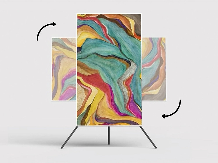 Chiêm ngưỡng The Frame như một bức tranh nghệ thuật đích thực với giá treo áp sát vào tường. Dễ dàng xoay giá đỡ để có được góc nhìn phù hợp và thoải mái nhất.