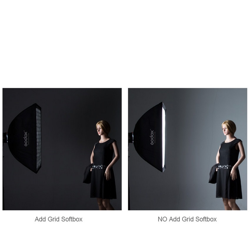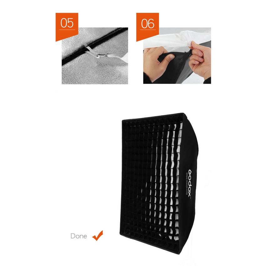 - Lưới tổ ong kèm theo, được sử dụng trên softbox để kiểm soát sự cố tràn ánh sáng và kiểm soát toàn bộ vùng phủ của ánh sáng..