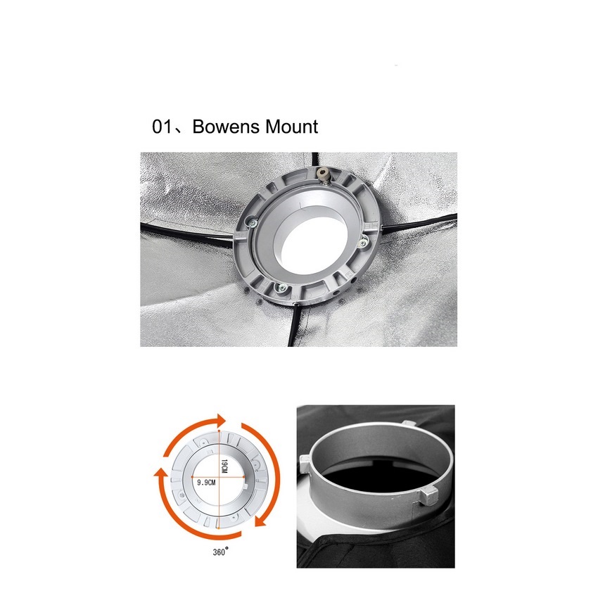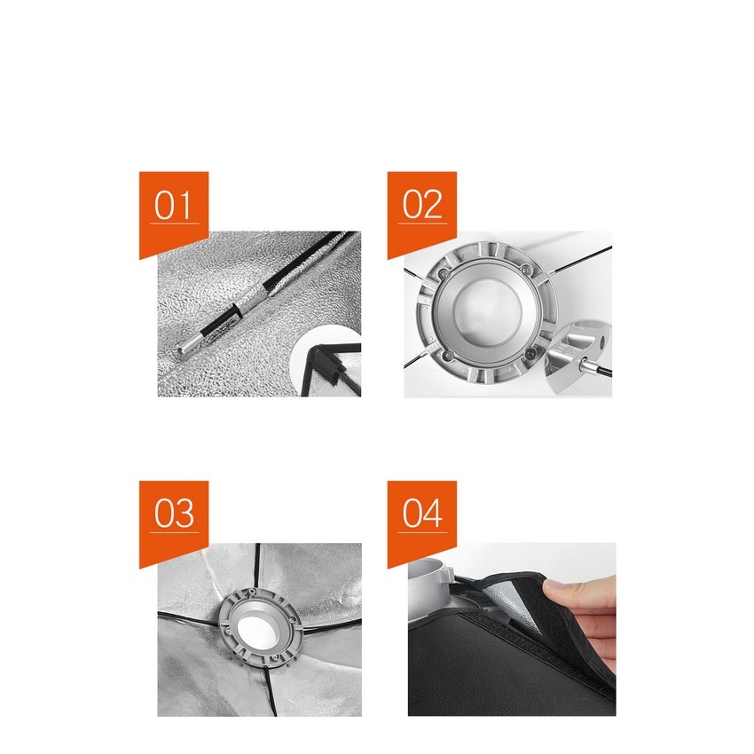 - Với kích thước 80 X 120 tiêu chuẩn Bowens mount, phù hợp với bất kỳ các loại đèn studio nào.