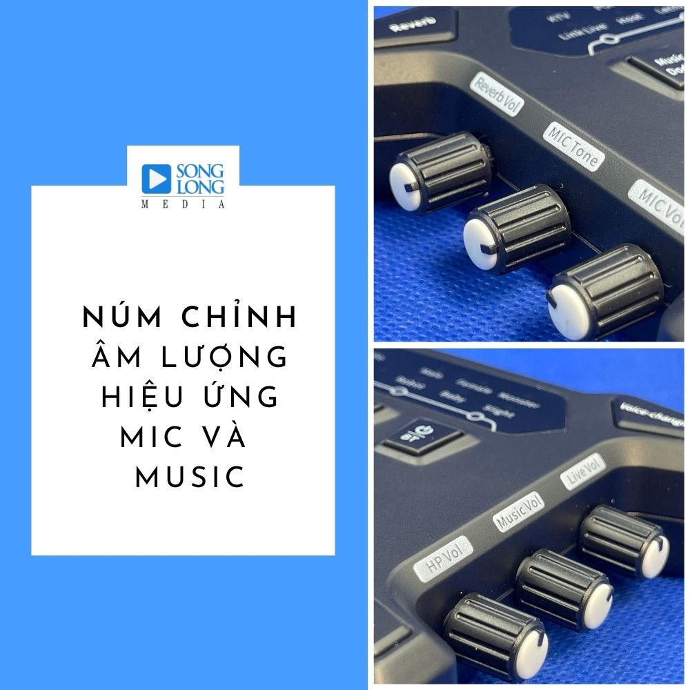 Sở hữu nút vặn giúp kiểm soát âm lượng micro, âm lượng tai nghe, mic tone, music vol, điều chỉnh reverb ( độ vang)