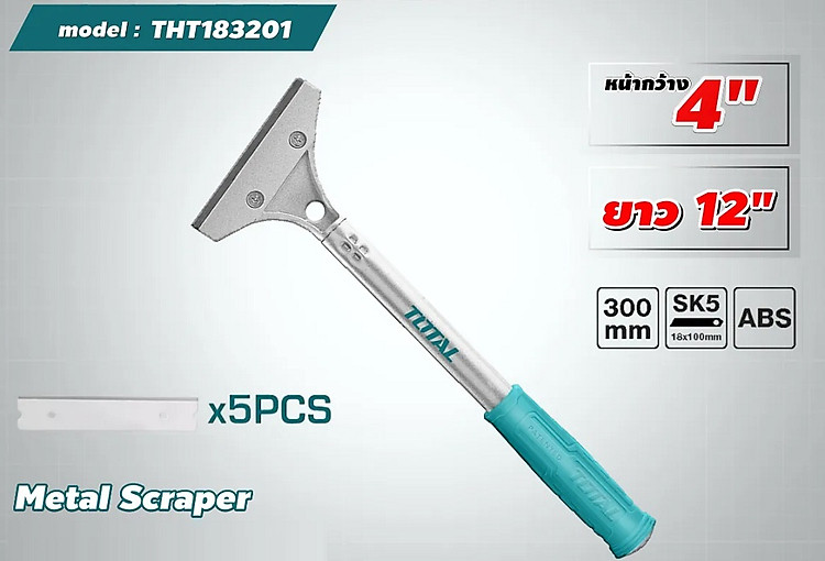 - Tên sản phẩm: Cây sủi cạo sơn kim loại kèm 6 lưỡi dao TOTAL THT183201