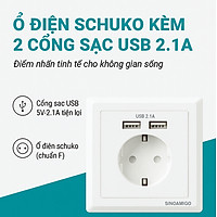 Ổ cắm điện Schuko (chuẩn Hàn Quốc) âm tường kèm 2 cổng sạc USB 5V-2.1A - Sinoamigo SW-1EUA nhập khẩu chính hãng