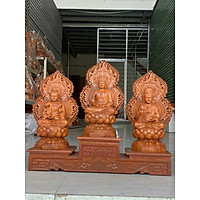 Bộ tượng phật tam thánh bằng gỗ hương đá kt cao 40 ×20×20cm cả lá chắn hòa quang sâu lưng cao 50cm