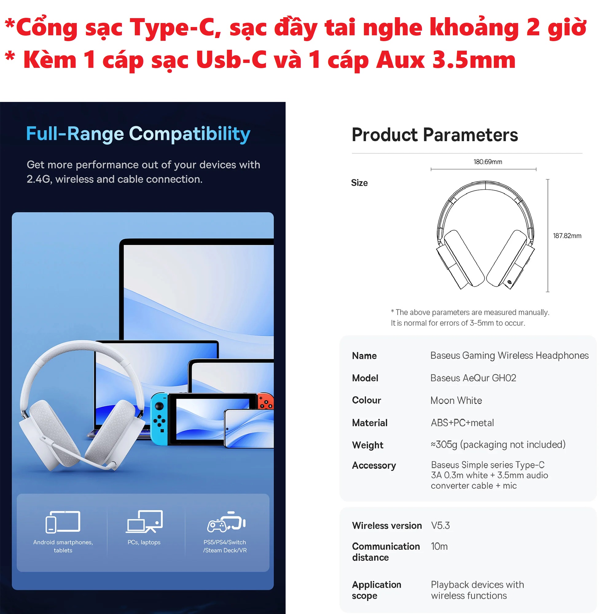 -Cổng sạc Type-C, sạc đầy khoảng 2 giờ, dùng trong khoảng 10 -40 giờ (tùy mức âm lượng)