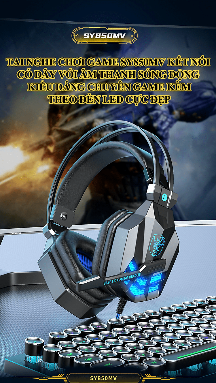 - Tai nghe có dây game thủ SY850MV được thiết kế ôm khít mọi cỡ đầu và tạo được cảm giác dễ chịu trong một thời gian sử dụng dài.