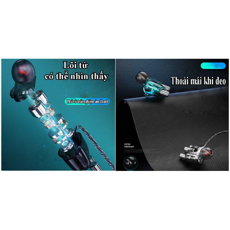 - Mỗi bên tai nghe chứa 2 diver âm thanh với màng loa tweeter và 1 màng loa bass cho chất lượng âm thanh tách bạch và chi tiết.