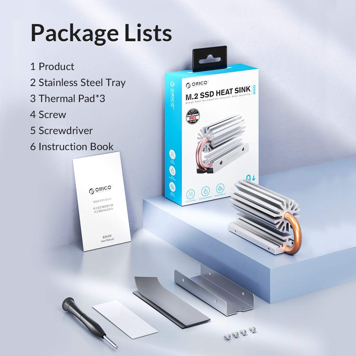 Tản nhiệt M.2 SSD dùng cho SSD M.2 NVME/Sata 2280 Orico M2HS6-SV - Hàng Chính Hãng