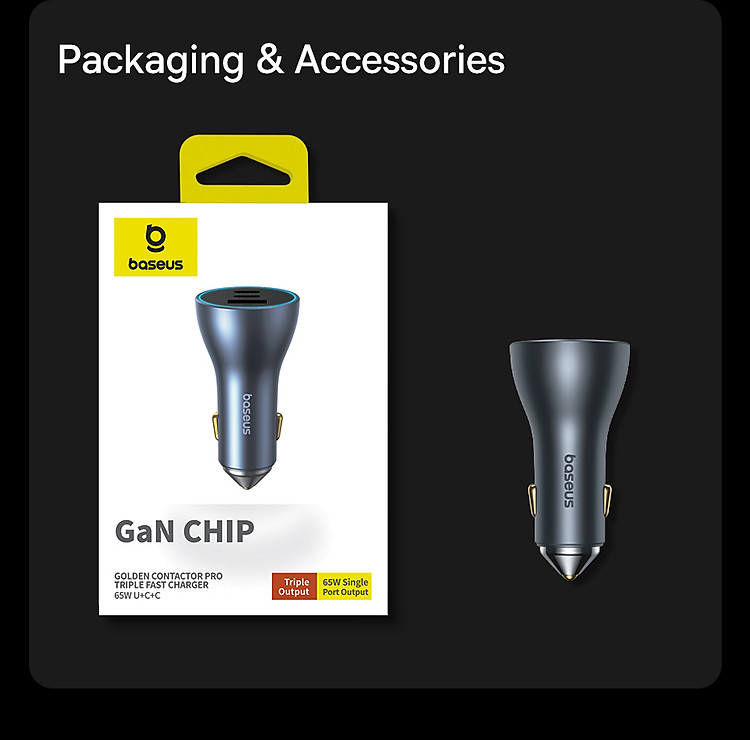 | Tên | Tẩu Sạc Nhanh Ô Tô Baseus Golden Contactor Pro GaN Fast Charging Car Charger U+2C 65W |