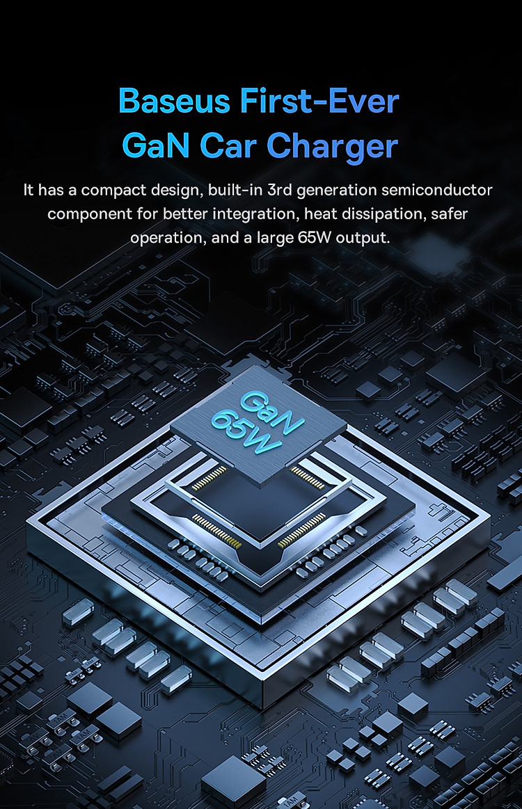 Sản phẩm sử dụng công nghệ GaN (Gallium Nitride) tiên tiến, giúp tạo ra một tẩu sạc nhỏ gọn và mạnh mẽ hơn so với các công nghệ truyền thống. Điều này cho phép tẩu sạc Baseus Golden Contactor Pro có kích thước nhỏ gọn, tiết kiệm không gian trong xe của bạn.