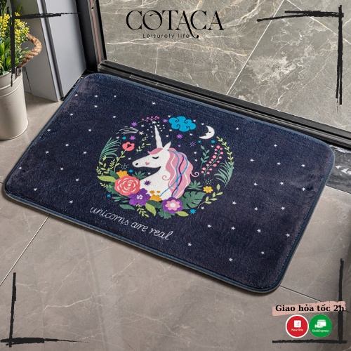Giới thiệu Thảm chùi chân, thảm lau chân vải ép thấm nước tốt, màu đẹp hình dễ thương kích thước 60x40cm