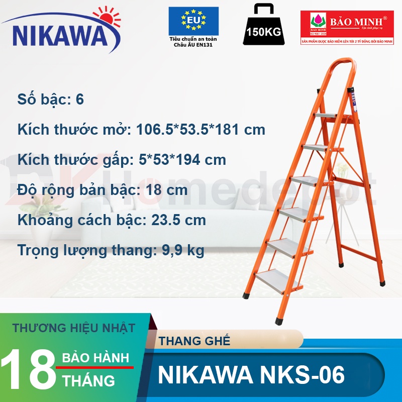 1. Thông số kỹ thuật của Thang nhôm ghế Nikawa NKS-06 - 6 bậc - nhập khẩu Nhật Bản, bảo hành chính hãng
