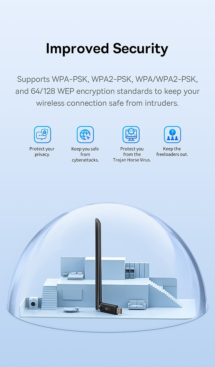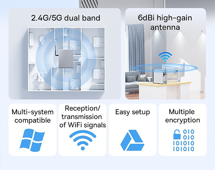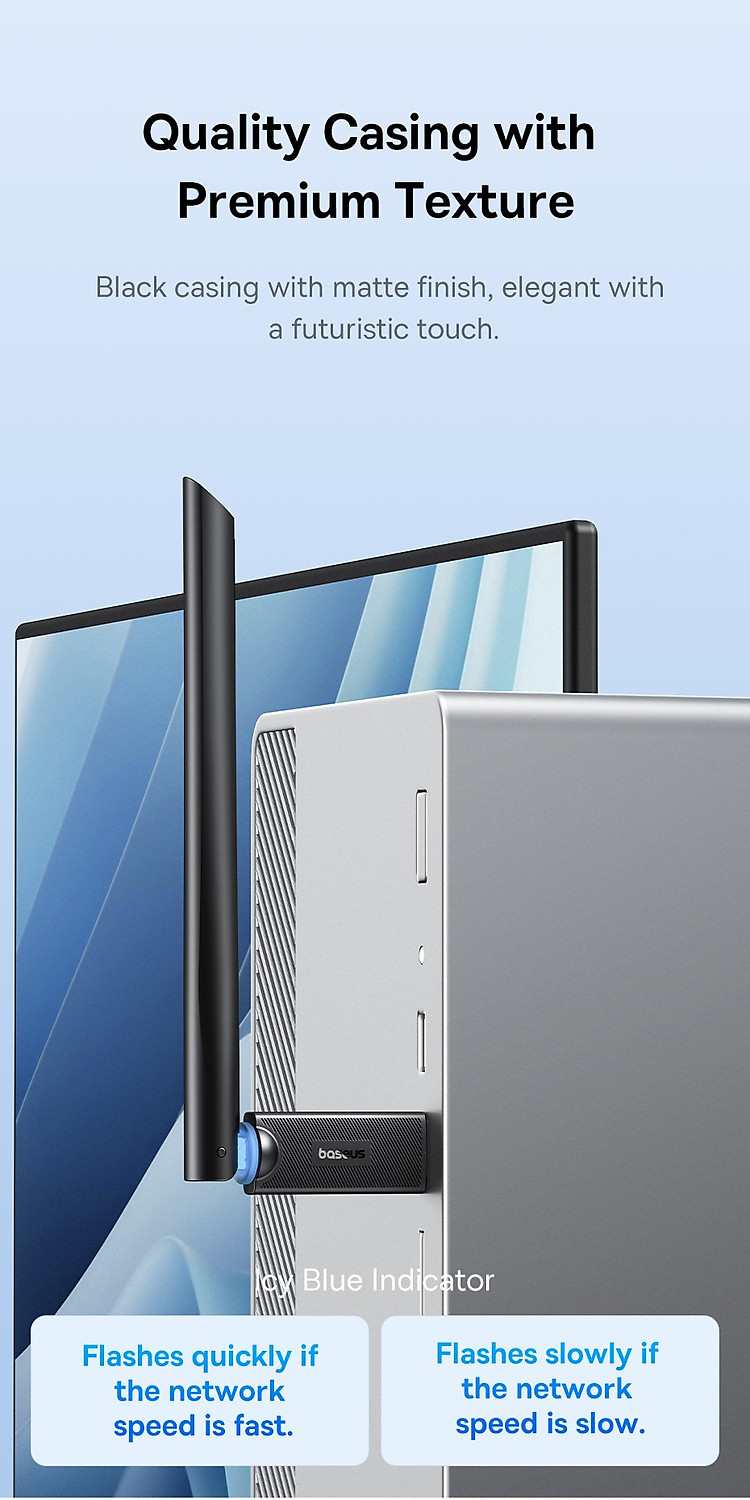 Thiết Bị Nhận Tín Hiệu Wifi Baseus FastJoy Series WiFi Adapter mang lại trải nghiệm kết nối Internet không dây tốc độ cao và linh hoạt, đồng thời cung cấp sự thuận tiện cho mọi người trong mọi tình huống. Dưới đây là những đặc điểm nổi bật của sản phẩm này: